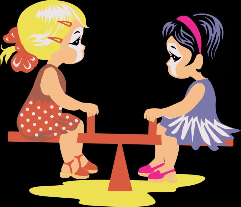 Girls on seesaw