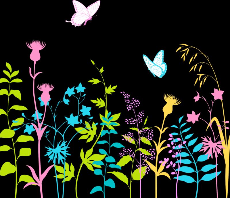 Pretty pastel garden with butterflies
